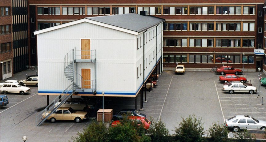 En tillfällig paviljong med 44 rum inne på gården byggs och hyrs ut ända till slutet av 1997. Därefter används den en kortare tid som kontor och arbetarbarack vid ombyggnader i befintliga byggnader, innan den sedan säljs för avflyttning.